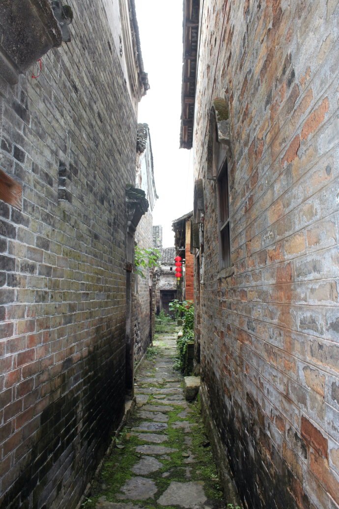 走进村子,便能看到建筑组合丰富多变。一条名为中心街的主干道东西贯穿整个村落,它是全村最为宽敞绵长的道路。在中心街的南北两侧,各连接着四条巷道,这八条纵线巷道与东西延展的八条横线巷道共同构成了所有民居房屋的经纬轴线。每两条轴线之间,排列有序,建有格式无异、造型相同的居民小区,每个小区里大概有四五栋民居,各自形成相对独立又彼此联系的整体。而且每栋民居之间还有相对狭窄些的小巷道,每栋民居的大门和后窗分别临于前后两条小巷道上。这些看似单独的一幢幢房屋,其实就是一家一户的栖身之所,它们的进深约 6 米,均为三开间,中间是堂屋,两侧辟为厢房与卧室。与其他地方民居不同的是,这里的民居进深小(仅为一进),开间大,内部不设置天井,而是以前后小巷道代替了前后天井,如此一来,室内采光依然充足,整体豁然明亮,毫无闭塞昏暗之感。这种以青石铺就大小巷道相接、房屋分区排列的平面区划和空间组合方式极为独特,在湘南古民居群院落中都较为罕见。数十栋几百间房舍以及相应的巷道、通道、排水沟等,都做到了精工细作、一丝不苟,彰显出了先辈们卓越的建筑智慧与匠心。